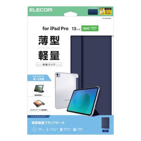 エレコム ELECOM iPad Pro ケース 13インチ ( M4 ) マグネット式フラップ カバー 2アングル スタンド オートスリープ機能 軽量 薄型 背面クリア TB-A25PLWVNV
