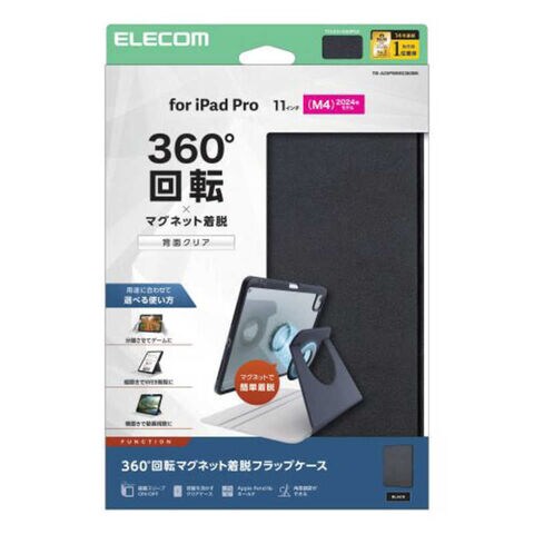 エレコム ELECOM iPad Pro ケース 11インチ ( M4 ) マグネット着脱フラップ カバー 360度回転 Apple Pencil収納 2段階角度調節 スタンド オートスリープ機能 背面クリア TB-A25PMMG360BK