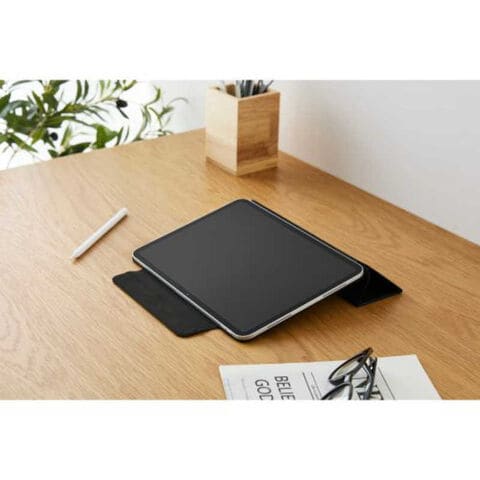 フラップカバーを三つ折りにすることで、動画視聴と、ドローイング・タイピングに最適な2通りの角度で使用できます。