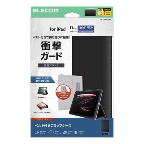 エレコム ELECOM iPad ケース 11インチ ( A16 ) / 10.9インチ 第10世代 ベルト付きフラップ カバー Apple Pencil収納 2アングル スタンド 軽量 耐衝撃 TB-A25RPLF2BK