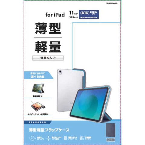 エレコム ELECOM iPad11インチ (A16) 10.9インチ (第10世代) フラップケース 薄型軽量 背面クリア 2アングル スリープ対応 TB-A25RWVBG