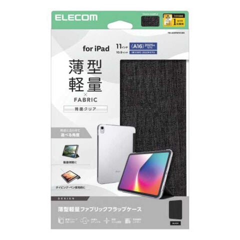 エレコム ELECOM iPad11インチ (A16) 10.9インチ (第10世代) フラップケース 薄型軽量 ファブリック 背面クリア 2アングル TB-A25RWVCBK