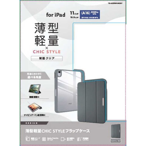 エレコム ELECOM iPad11インチ (A16) 10.9インチ (第10世代) フラップケース CHICSTYLE 背面クリア TB-A25RWVJM3GY