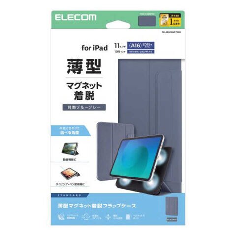 エレコム ELECOM iPad11インチ (A16) 10.9インチ (第10世代) フラップケース 超薄型 マグネット装着 スリープ対応 TB-A25RWVPF2BG