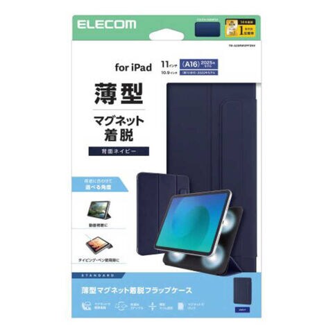 エレコム ELECOM iPad11インチ (A16) 10.9インチ (第10世代) フラップケース 超薄型 マグネット装着 スリープ対応 TB-A25RWVPF2NV