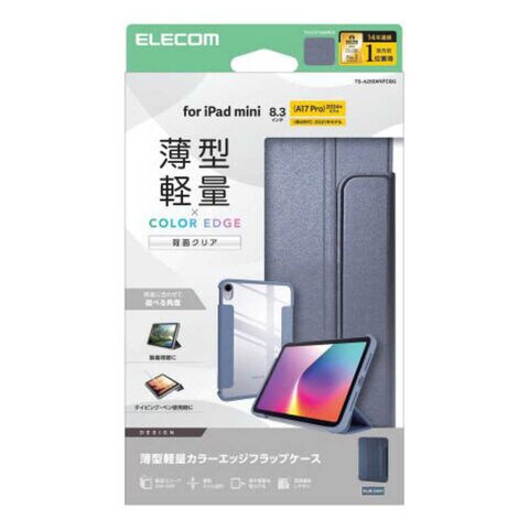 エレコム ELECOM iPad mini ケース 8.3インチ ( A17 Pro ) / 第6世代 マグネット式フラップ カバー 2アングル スタンド オートスリープ機能 軽量 薄型 耐衝撃 背面クリア TB-A25SWVFCBG