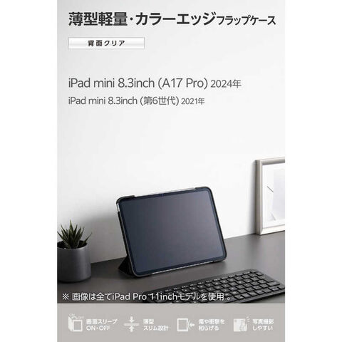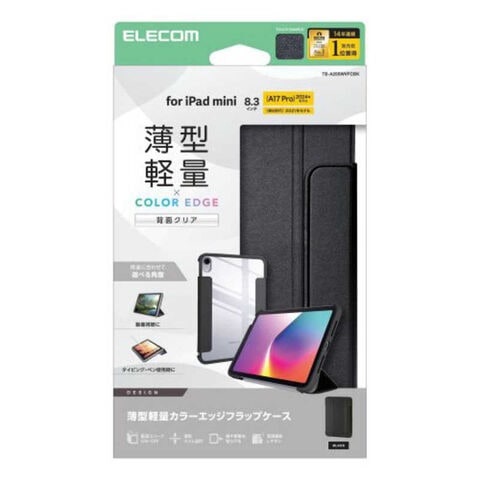 エレコム ELECOM iPad mini ケース 8.3インチ ( A17 Pro ) / 第6世代 マグネット式フラップ カバー 2アングル スタンド オートスリープ機能 軽量 薄型 耐衝撃 背面クリア TB-A25SWVFCBK