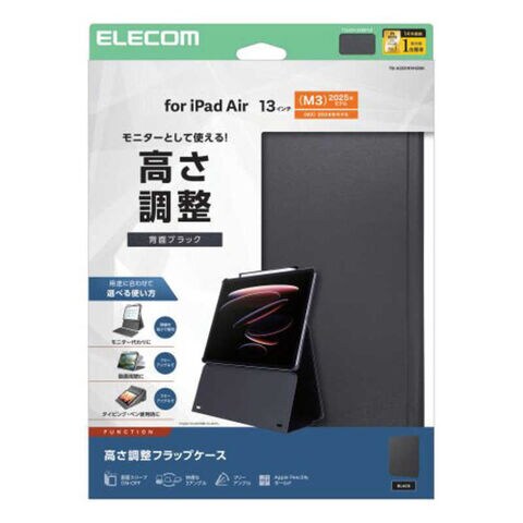エレコム ELECOM iPad Air ケース 13インチ ( M3 / M2 ) 高さ調整フラップ カバー スタンド オートスリープ機能 TB-A25XWVH2BK