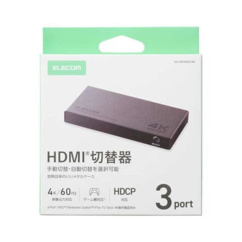エレコム ELECOM HDMI 切替器 3入力1出力 4K 60Hz HDR対応 セレクター スイッチャー 手動/自動切替 Switch PS5 Fire TV Stick 対応 ブラック DH-SW4KB31BK