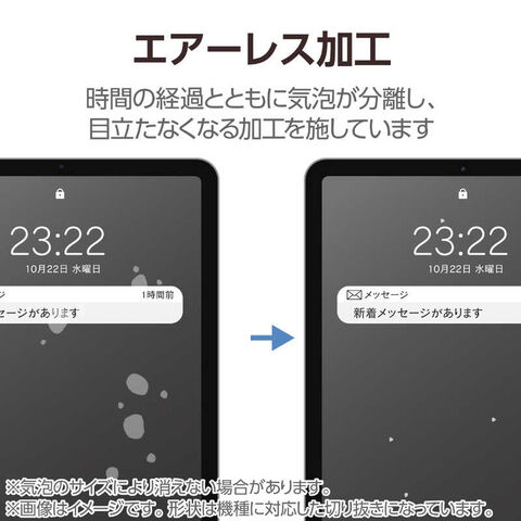 時間の経過とともに気泡が目立たなくなる、特殊吸着層を採用したエアーレス加工を施しています。