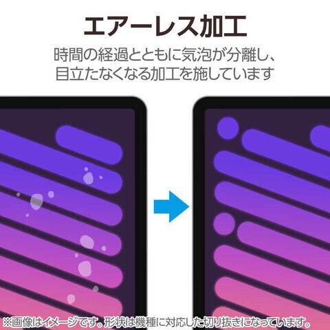 時間の経過とともに気泡が目立たなくなる、特殊吸着層を採用したエアーレス加工を施しています。
