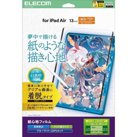 エレコム ELECOM 13インチiPadAir(M2) 保護フィルム 紙心地 反射防止 ケント紙タイプ 着脱式 TB-A25XFLNSPLL