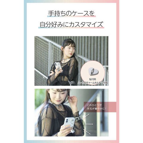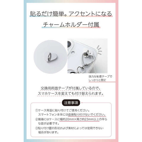 スマホの背面に貼って使える、ハート型のチャームホルダーが付属しています。