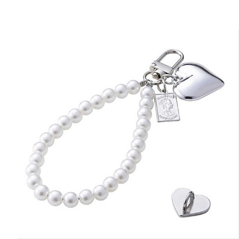 ハートチャームとパールビーズのシンプルな組み合わせで、どんなスマホケースにも自然になじみます。