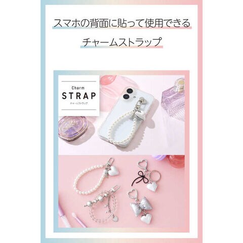 エレコム ELECOM スマホチャーム パールビーズ ストラップ 強力粘着 ハート型チャームホルダー付 落下防止 スマホケース用 おしゃれ P-STKHBEPALWH