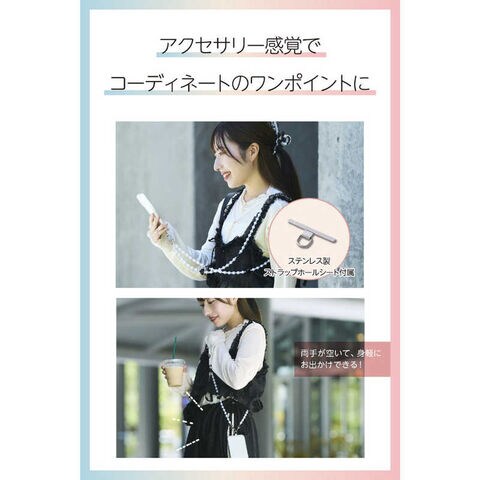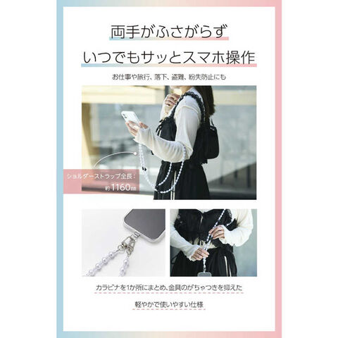 エレコム ELECOM スマホストラップ ハートパールビーズ ショルダー 首掛け ストラップホルダーシート付 iPhone/Android対応 おしゃれ 落下防止 P-STSDH1BEPALBK