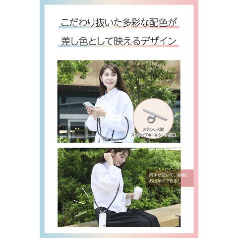 ケースにストラップホールがなくても、付属のストラップホールシートをスマートフォンとケースの間に挟むだけで使用でき、取り外しも簡単です。
