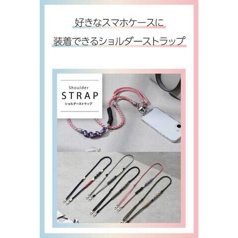 エレコム ELECOM スマホストラップ 編みロープタイプ ショルダー 首掛け 長さ調整可 ストラップホルダーシート付 iPhone/Android対応 落下防止 P-STSDH1KNPN