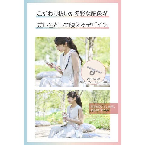 ケースにストラップホールがなくても、付属のストラップホールシートをスマートフォンとケースの間に挟むだけで使用でき、取り外しも簡単です。