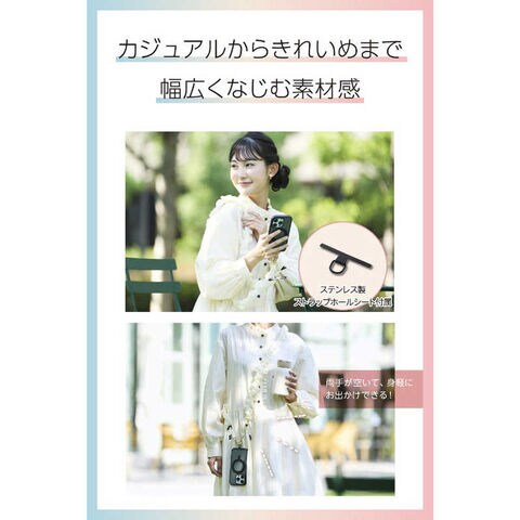 ケースにストラップホールがなくても、付属のストラップホールシートをスマートフォンとケースの間に挟むだけで使用でき、取り外しも簡単です。