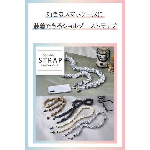 くしゅくしゅとした立体感が目を引く、シンプルながら存在感のあるスマホショルダーストラップです。