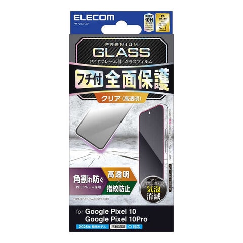 エレコム ELECOM Google Pixel 10 / 10 Pro ガラスフィルム 画面内指紋認証対応 高透明 全面保護 強化ガラス 表面硬度10H フレーム付 ブラック PM-P252FLGF