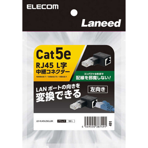 エレコム ELECOM RJ45中継コネクタ Cat5e対応 L字 左向キ UTP LD-RJ45U5ELLBK