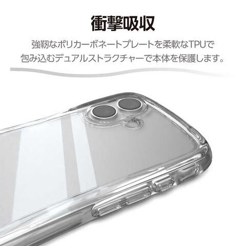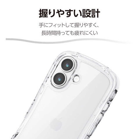 中央のくびれ形状に平坦な面を設けることで、手に馴染む快適なグリップ感を実現したGrippyシリーズの耐衝撃ハイブリッドケースクリアタイプです。