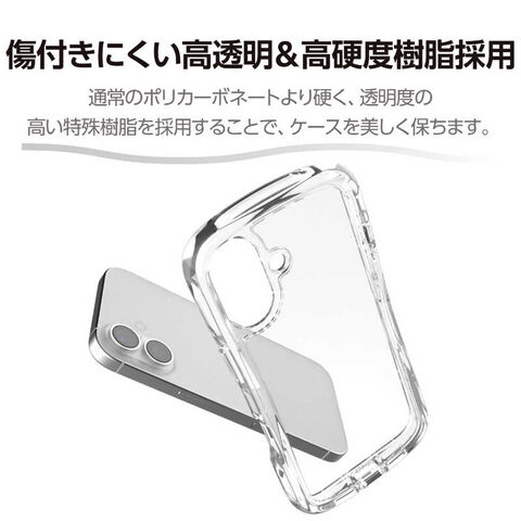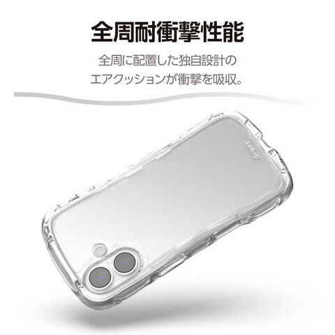 全周に配置した独自設計のエアークッションが衝撃を吸収し、背面には高硬度のポリカーボネート素材を採用。