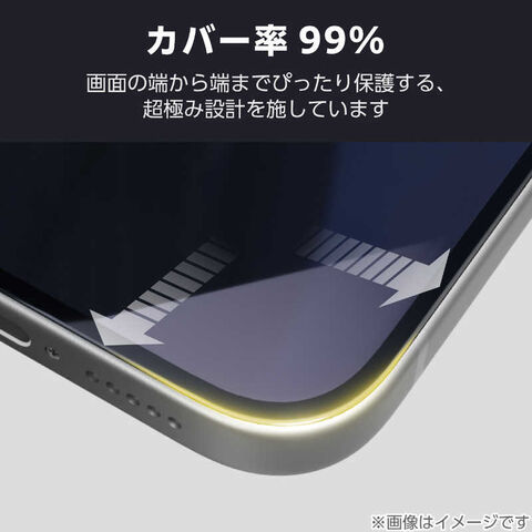 画面カバー率99%。超極み設計を採用したブルーライトカットタイプの画面保護ガラスフィルムです。ぴったり位置合わせできる貼り付けツール付きです。