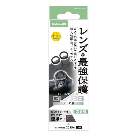 エレコム ELECOM iPhone 17 レンズフィルム カメラレンズガラスフィルム ゴリラ 0.21mm ブラック PMA25AFLLGOBK