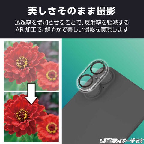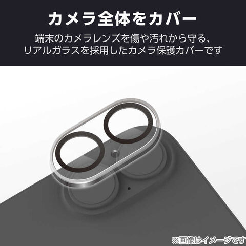 端末のカメラレンズを傷や汚れから守る、リアルガラスを採用した角割れ防止タイプのカメラレンズ保護カバーです。