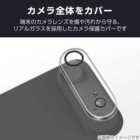 端末のカメラレンズを傷や汚れから守る、リアルガラスを採用した角割れ防止タイプのカメラ保護カバーです。