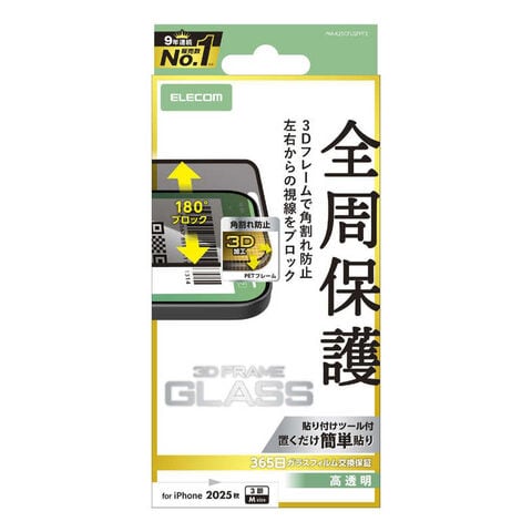エレコム ELECOM iPhone 17 Proフィルム ガラスフィルム フレーム付キ ノゾキ見防止 左右 クリア PMA25CFLGFPF2