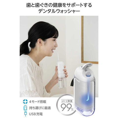 エレコム ELECOM 口腔洗浄器 デンタルウォッシャー UV除菌 150mlタンク 4モード IPX7防水 USB充電 ホワイト [ハンディタイプ / 国内専用] HCJF02WH