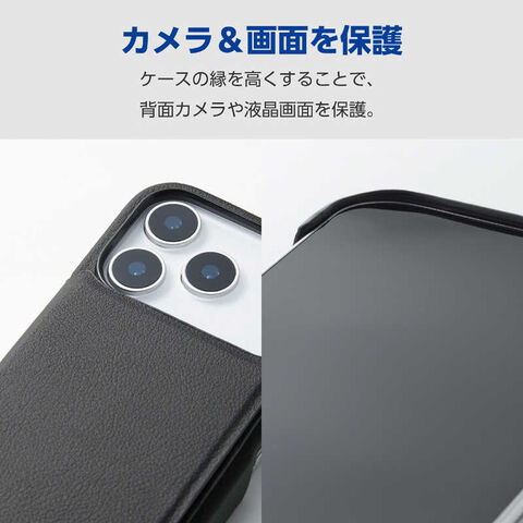 エレコム ELECOM iPhone 17 Proケース ソフトレザーケース 背面収納 ブラック PMA25CPLORFBK