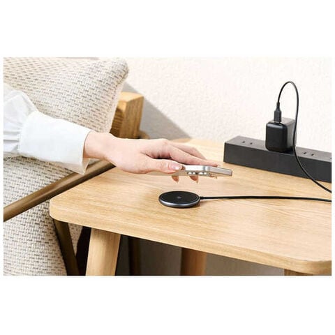 マグネットでスマートフォンの背面にぴったりくっつくため、スマホ操作をしながらの充電も快適です。
