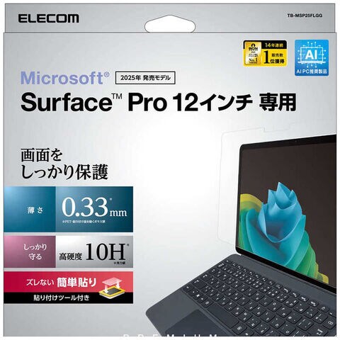 エレコム ELECOM Surface Pro12/ガラスフィルム/高透明/ガイドフレーム付 TB-MSP25FLGG