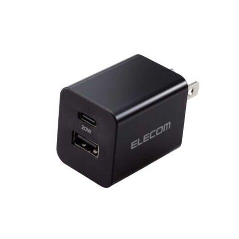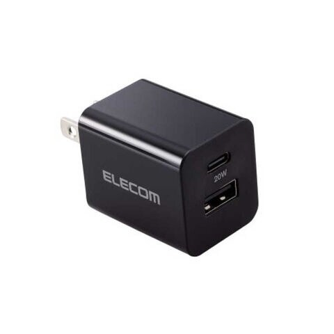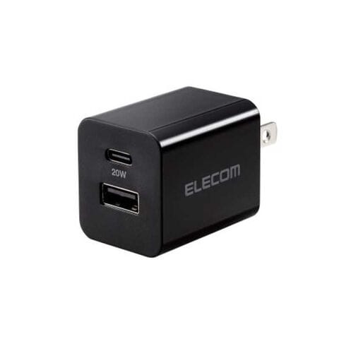 エレコム ELECOM 充電器 USB Type-C 20W PD対応 2ポート USB-C USB-A コンセント iPhone iPad Android 各種対応 PSE適合 折りたたみ式プラグ ブラック MPA-AC12020XBK