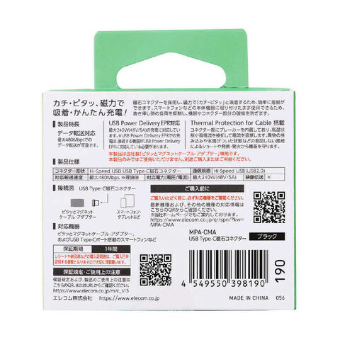 エレコム ELECOM USB-C マグネット端子 240W PD対応 着脱式 Type-Cコネクタ ケーブル専用 ブラック MPA-CMA