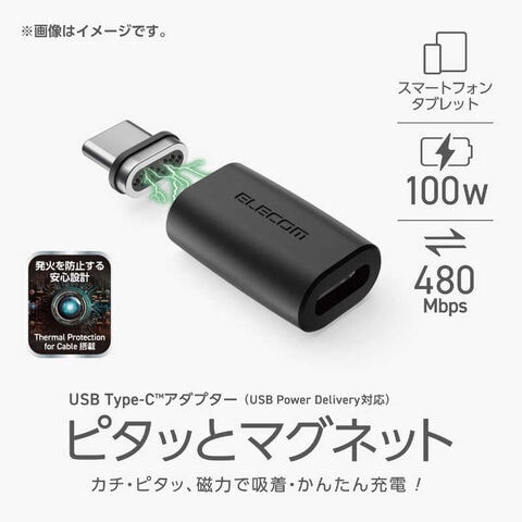 エレコム ELECOM USB-C マグネット 変換アダプタ 100W PD対応 着脱式コネクタ ブレーカー内蔵 ブラック MPA-CMAADBK