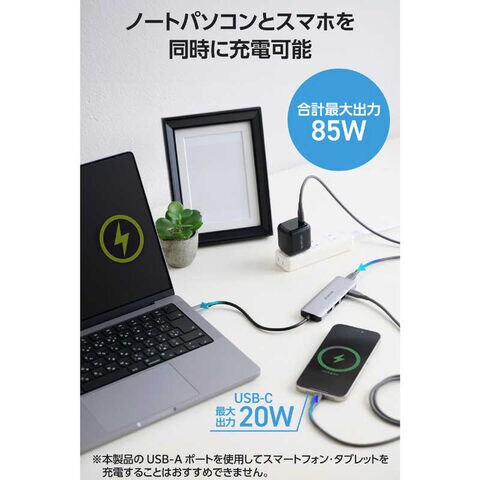 ※スマートフォンとパソコン両方を充電する場合は、合計最大85W出力となります。