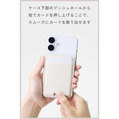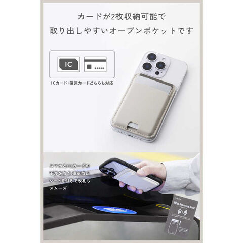 エレコム ELECOM MagSafe カードケース iPhone用 2枚収納 レザー風 薄型 マグネット脱着 オープンポケット スマホ カード入れ MAGKEEP ベージュ AMS-MAGCDBG
