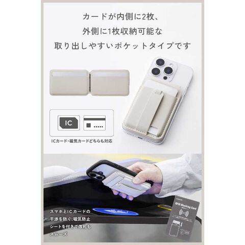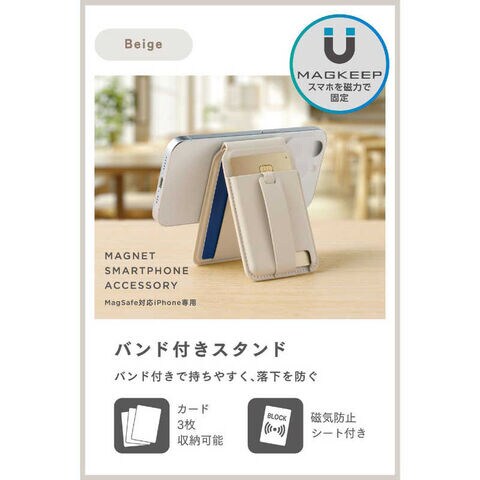 エレコム ELECOM MagSafe カードケース スタンド iPhone用 磁気防止シート付 3枚収納 マット素材 バンド付 MAGKEEP ベージュ AMS-MAGCSBBG