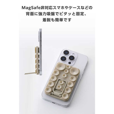 MagSafe非対応のスマートフォンやケースにも対応し、背面を強力吸盤でピタッと固定。