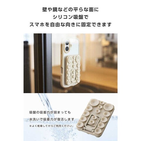 エレコム ELECOM スマホホルダー 両面吸盤 全機種対応 スタンド機能付 縦横対応 強力固定 動画視聴 自撮り 壁鏡ガラス貼付 シリコン コンパクト TakoPita ベージュ P-TKPTSUCS01BG