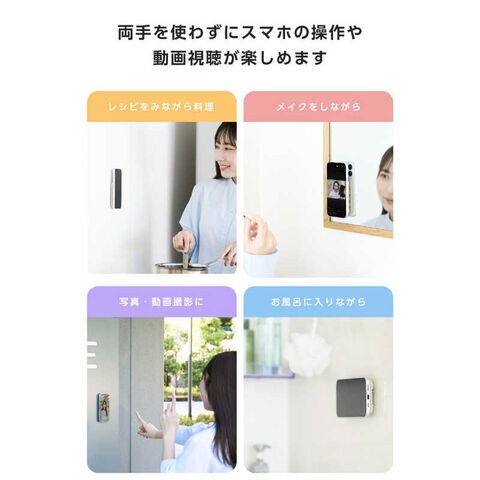 鏡に貼り付ければ、メイク中の画面チェックもスムーズに行えます。