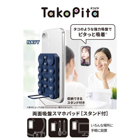 エレコム ELECOM スマホホルダー 両面吸盤 全機種対応 スタンド機能付 縦横対応 強力固定 動画視聴 自撮り 壁鏡ガラス貼付 シリコン コンパクト TakoPita ネイビー P-TKPTSUCS01NV