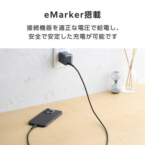 eMarkerを搭載し、充電時に接続する機器へ供給する電圧を自動で調整します。