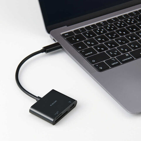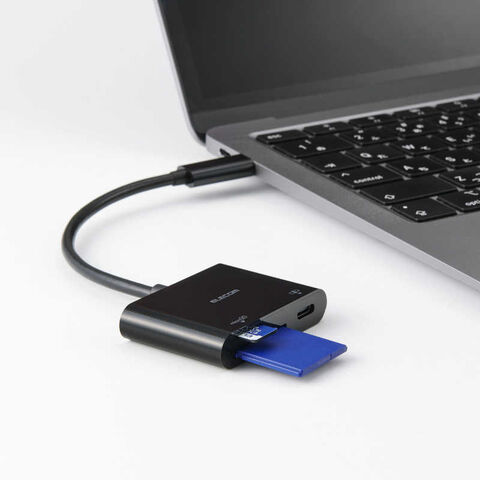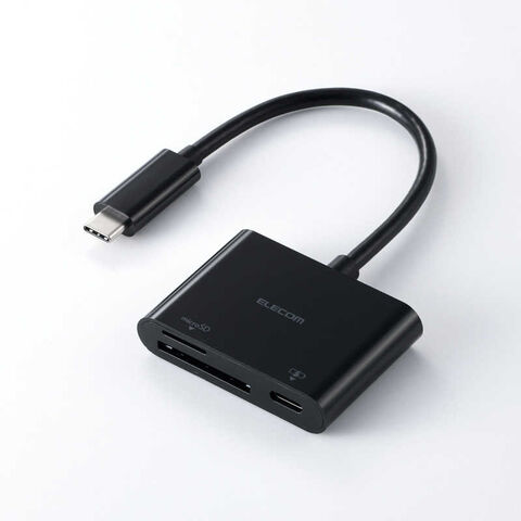 エレコム ELECOM SDカードリーダー Type-C SD/microSD対応 PD100W 充電しながらデータ転送 ケーブル一体型 ブラック MR3C-C20PBK